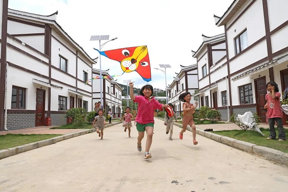 恒大援建的新農(nóng)村里,孩子們歡樂嬉戲