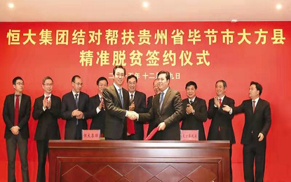 2015年12月,恒大幫扶大方精準脫貧簽約儀式現(xiàn)場