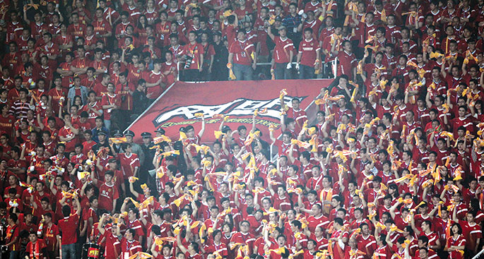 球迷激昂高呼為廣州恒大隊加油鼓勁