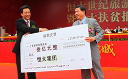 2010年“廣東扶貧濟(jì)困日”啟動(dòng)儀式上,恒大集團(tuán)捐款1.2億元。