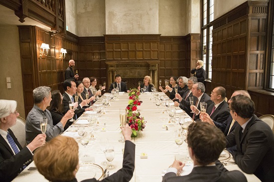 會談結(jié)束后,Lawrence S.Bacow校長全程陪同參觀了哈佛校園和美國第六大藝術(shù)館哈佛藝術(shù)博物館,并于當(dāng)晚特意在博物館隆重宴請了許家印一行。恒大集團(tuán)董事局副主席、總裁夏海鈞,副總裁陳敏、史俊平,以及哈佛大學(xué)常務(wù)副校長Alan M. Garber,哈佛大學(xué)校長助理Peggy Newel、Mary Beth Pearlberg,哈佛醫(yī)學(xué)院院長George Q.Daley,設(shè)計(jì)學(xué)院院長Mohsen Mostafavi,基礎(chǔ)科學(xué)與研究學(xué)院院長David E.Golan,恒大免疫疾病中心聯(lián)席院長Vijay Kuchroo、Arlene Sharpe,綠色建筑與城市中心主任Ali Malkawi等14位哈佛大學(xué)領(lǐng)導(dǎo)班子和相關(guān)院系負(fù)責(zé)人出席活動。
