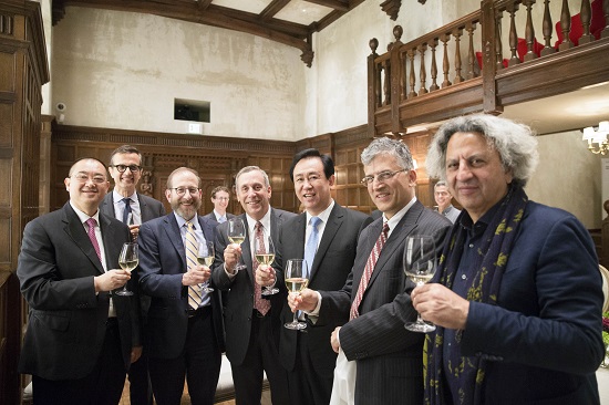 恒大集團(tuán)董事局主席許家印、總裁夏海鈞在歡迎晚宴上與哈佛校長、常務(wù)副校長、設(shè)計(jì)學(xué)院院長、免疫疾病中心聯(lián)席院長合影