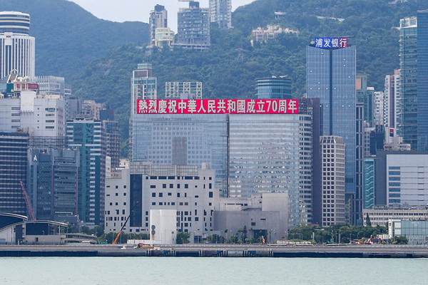 恒大香港總部大樓打出國慶慶祝標(biāo)語